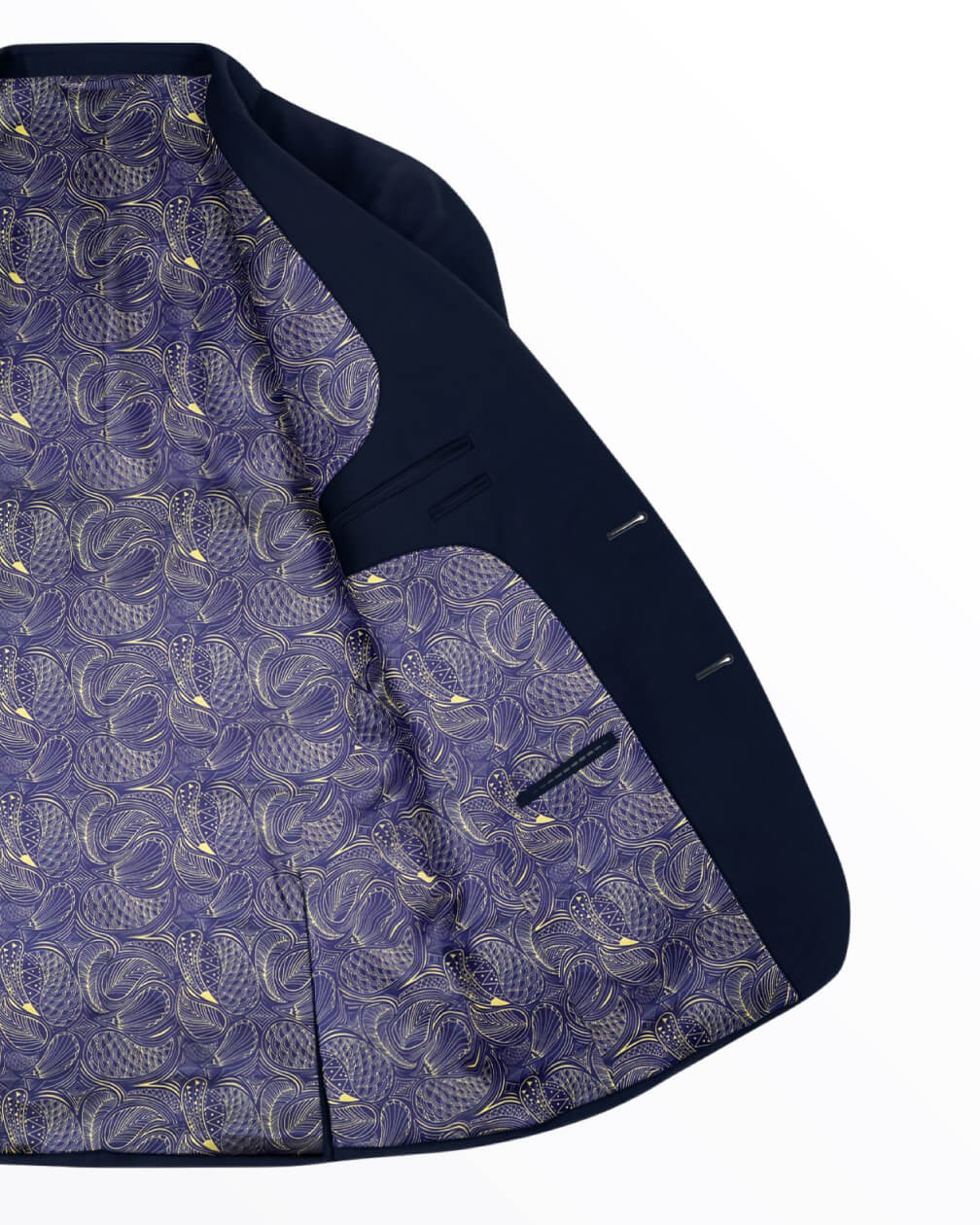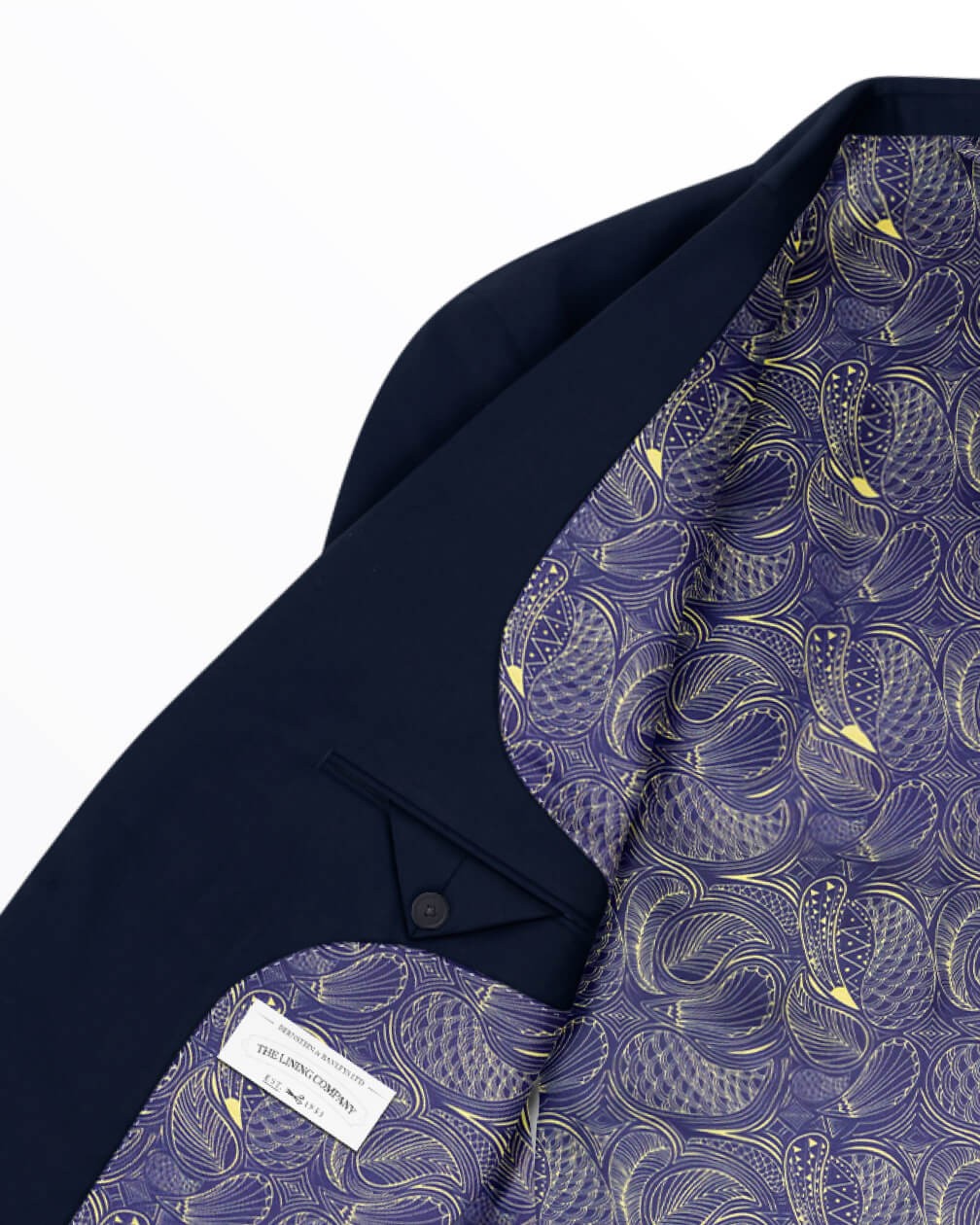 Drawing inspiration from the glamour and geometry of its namesake era, Art Deco Paisley reimagines the paisley heritage with an early 20th-century twist. The deep navy ground and metallic gold line work echo the opulence of Art Deco designs, elevating the interior of any outfit with a feel of glitz and unmistakable sophistication.