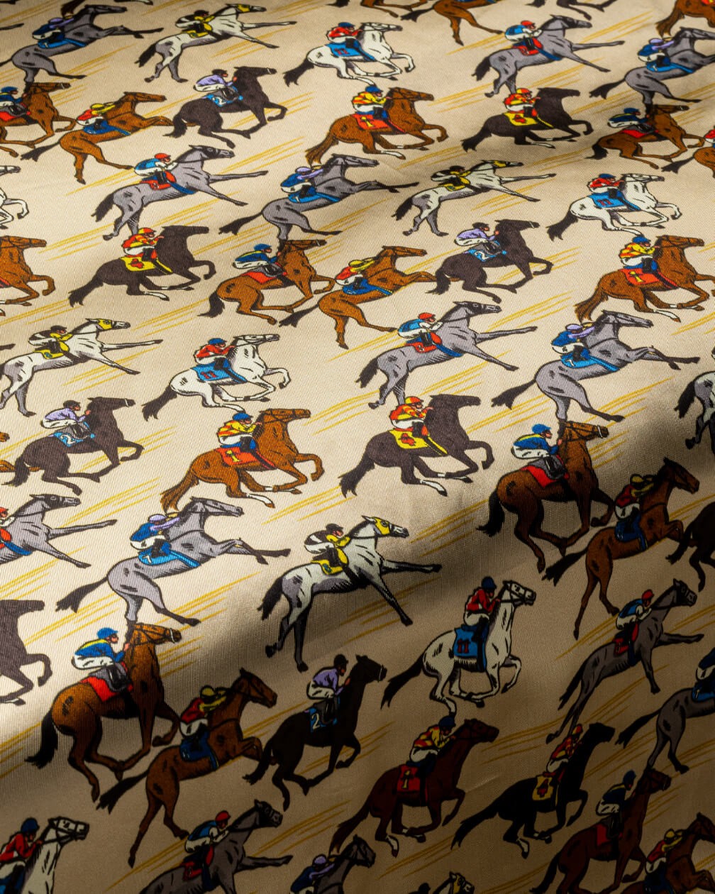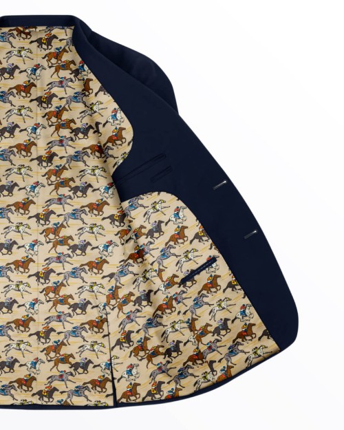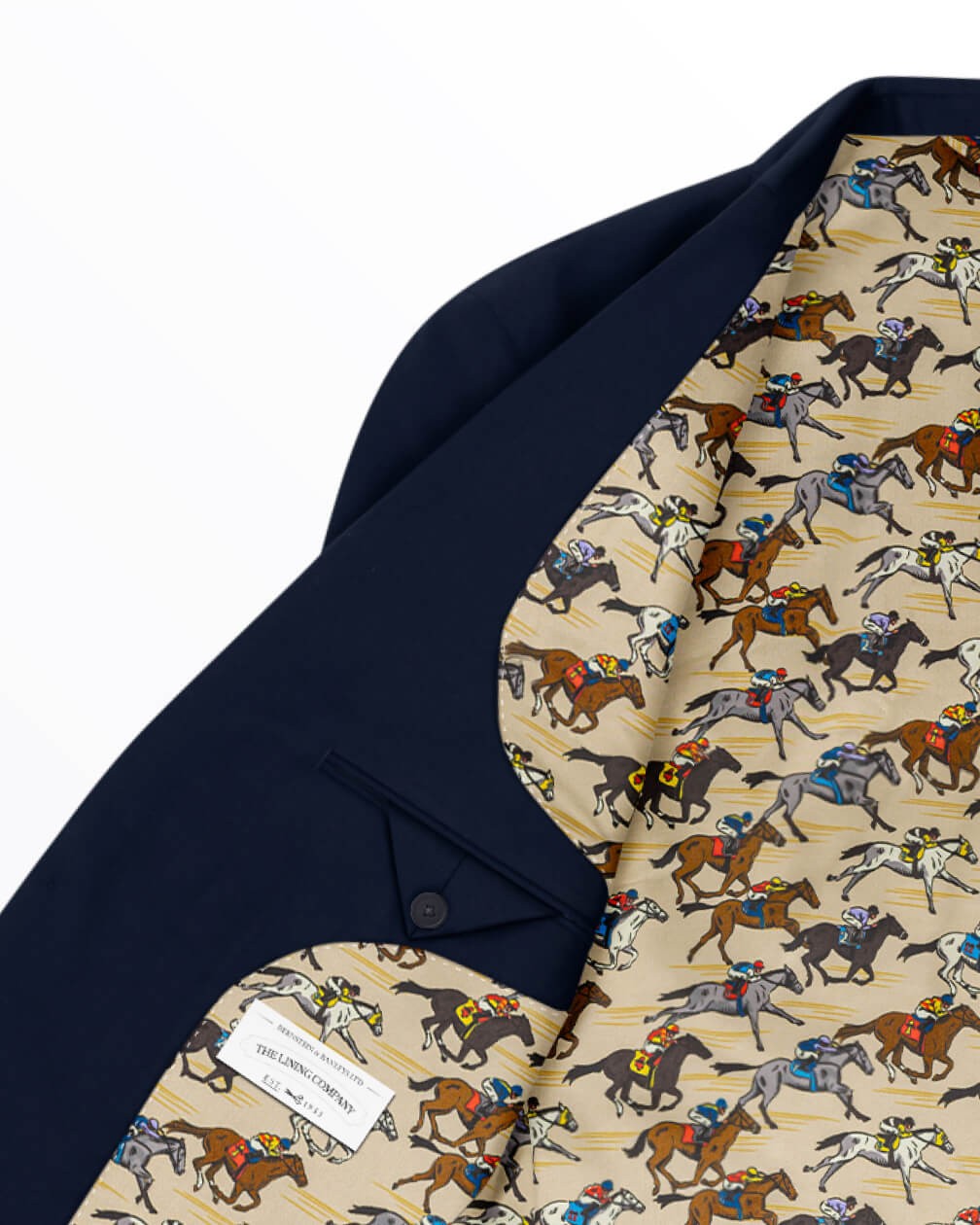 Based on The Dubai World Cup, one of the world’s most prestigious races, Final Furlong delivers the drama of racing in remarkable style. Galloping horses and colourful silks breathe life into this lining, reflecting the fierce battle to reach the finish line. A confident choice for those who enjoy high-stakes sport and a winning aesthetic.