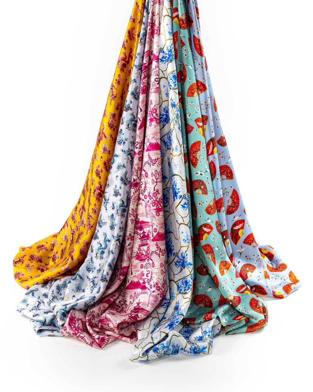 Our digitally printed design linings are set on a high-quality, 100% Viscose Rayon Twill base.