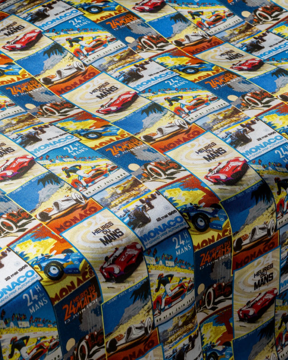 Top Speed draws on the golden age of motorsport, featuring vintage racing posters from iconic events such as Le Mans and the Monaco Grand Prix. This dynamic collage encapsulates an era when racing was as much about glamour as grit, translating that heritage into a richly detailed lining. A refined tribute to racing history, ideal for fans who love life in the fast lane.