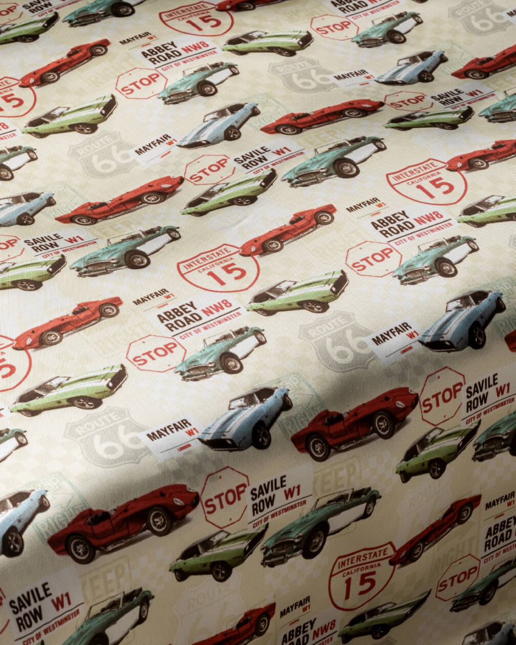 From Abbey Road to Route 66 – Transatlantic Autos is inspired by beloved roadsters and iconic destinations on both sides of the Atlantic. Representing the romance and nostalgia of mid-century motoring, this lining reads like a photobook from a global grand tour. A design made for those who appreciate the everlasting appeal of the open road.